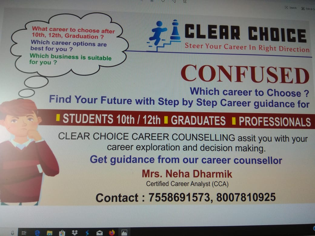 Neha Dharmik, is a highly qualified professional with Mtech in electronics.She has total 8 years experience in teaching and 2 years experience in IT industry.She is a dedicated individual who is highly passionate and committed in providing right guidance needed for the individual aspiring for future growth.She is founder of career choice career counselling which aims at understanding the requirement of the individual and takes utmost care in providing them discover their true potential guiding them to their desired career path.